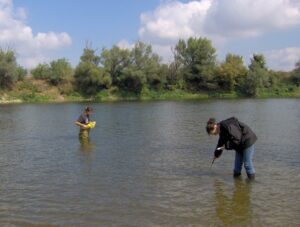 Velika Morava is 175 km long river originating from Western and Southern Morava Rivers. The whole catchment area (including Western and Southern Morava) is about 38.000 km², while the basin area of Velika Morava is 6.760 km². The mean annual flow is 245 m³ s-1 (gauge station Ljubicevo, near to the mouth of the Danube – Annual Water Quality Reports 1999-2008). Based on the size of catchments area and its flow, Velika Morava is one of the major tributaries of the Danube. Over 95% of the basin is located at the territory of the Republic Serbia. The water regime is unimodal, characterized by the prominent seasonal fluctuations. In the spring the river can be almost torrential (the mean flow near to the mouth 560 m³/s), while in the rest of the year there is a “low water” period, particularly in the autumn, when mean flow does not exceed 100 m³/s. The riverbed is 80-200 m wide, and up to 10 m deep, although average depth usually does not exceed 2 m. The silicates are the dominant geological substrate in entire catchment area. According to the main geographical features the river could be divided into two main parts. The lower one, from confluence with Dunav to the Resava River mouth (near Svilajnac), is 85 km long typical lowland watercourse (altitude lower the 100 m), with 0.35 ‰ declination, and with sand and mud/silt as dominant fractions of the riverbed. This part of the Velika Morava River belongs to Ecoregion 11 (ER11_Ser). The upper one, from the Resava river mouth to Stalac (the confluence of Southern and Western Morava Rivers), is 90 km long. The mean altitude is over 100 m a.s.l. (to 135 m), declination is 0.44 ‰ and in the riverbed the dominant part are sand and gravel fractions. Upper part belongs to Ecoregion 5 (ER5_Ser). Velika Morava river basin has four permanent monitoring sites. The area is densely populated and the river is under the influence of various pollution sources (organic, agricultural, industrial), as well as hydromorphological pressures (meander cutting, shortening, channeling, as well as gravel and send extraction).